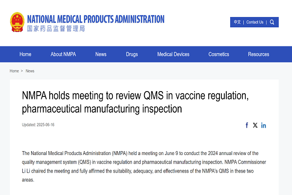 NMPA holds meeting to review QMS in vaccine regulation, pharmaceutical manufacturing inspection